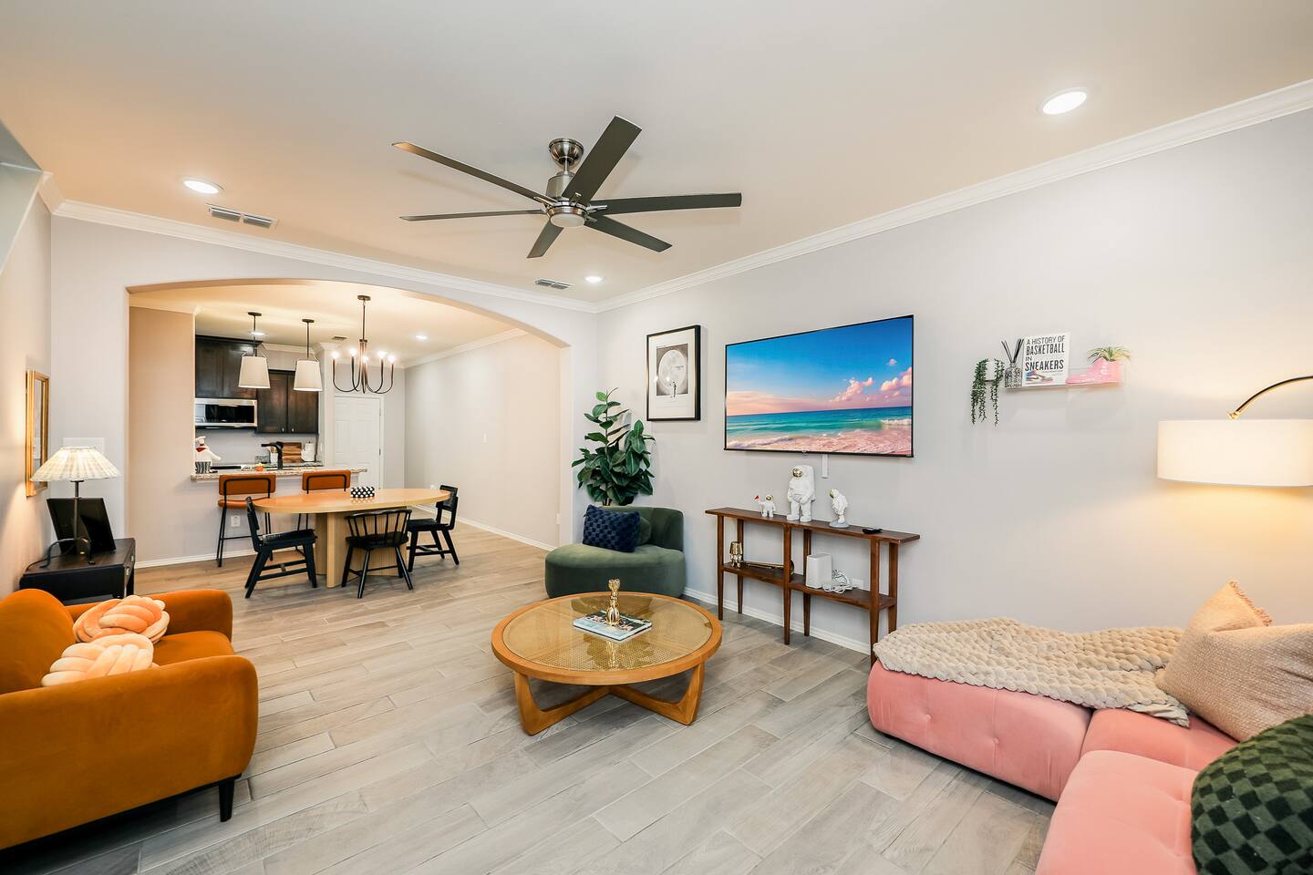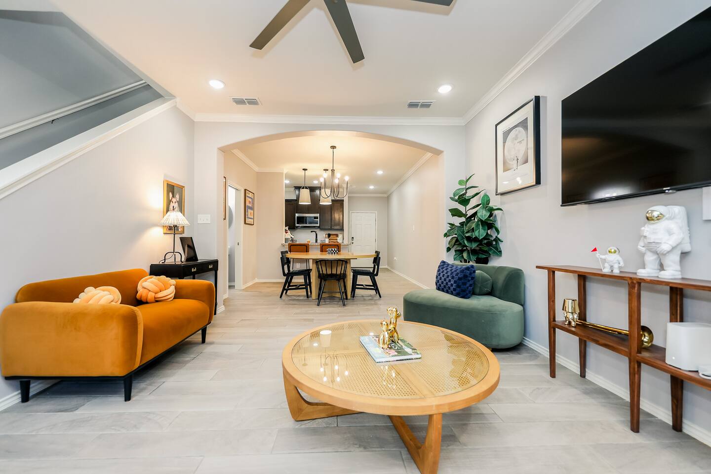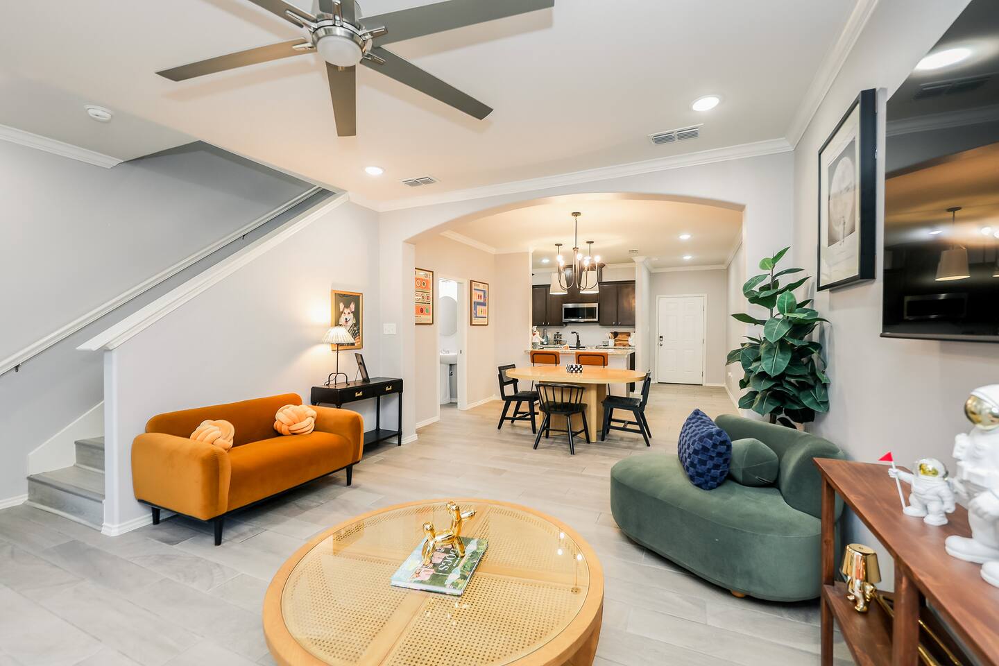 Welcome to your chic boho-style townhouse in North Laredo, the perfect home base for your visit. Whether you’re here to shop, work, or relax with friends and family, you'll find a space thoughtfully designed with comfort and character in mind. Step inside and feel the warm, inviting atmosphere created by a blend of modern boho décor and abundant natural light. The entire two-story townhouse is yours to enjoy, offering plenty of room to unwind. With three private bedrooms, each featuring a cozy queen bed, the home comfortably sleeps up to six guests. What You’ll Love: • Three private bedrooms with comfortable queen beds and fresh linens • 2.5 bathrooms, perfect for families or groups • A fully stocked kitchen, ideal for cooking and gathering • Fast Wi-Fi for remote work or streaming • TV for enjoying your favorite shows • Central A/C and heating to keep you comfortable year-round • Free on-site parking